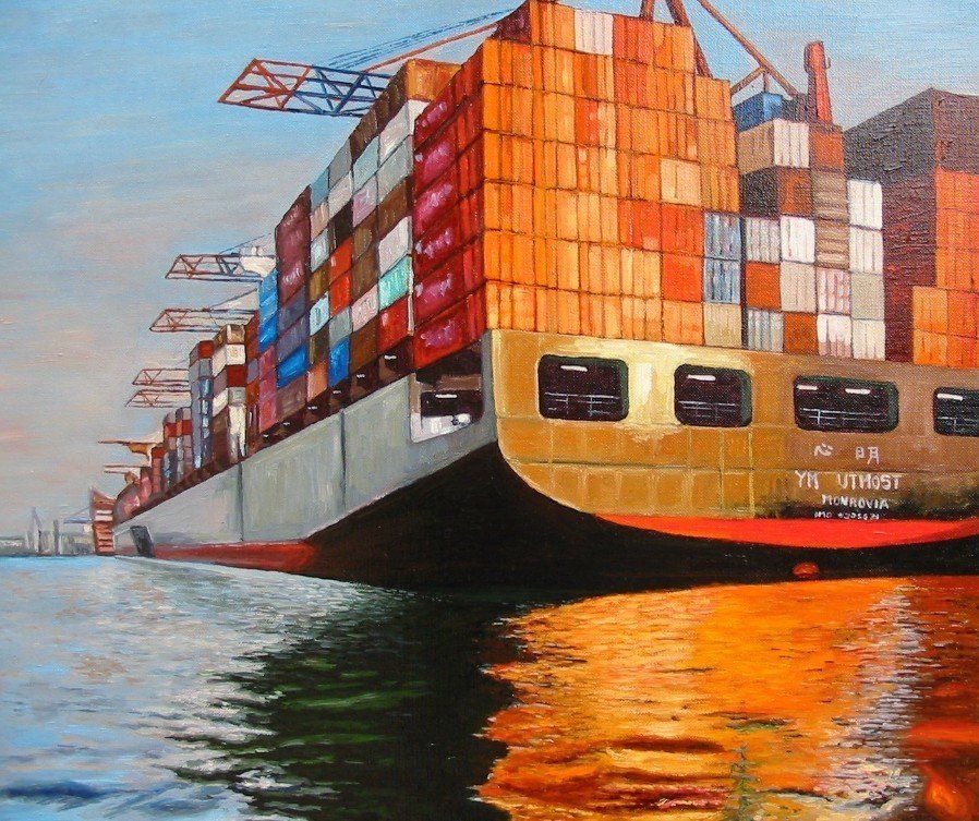 N°148 Super porte containers à Hambourg HST 60 X 81 exposition Cercle des Arts Jarville 2019
