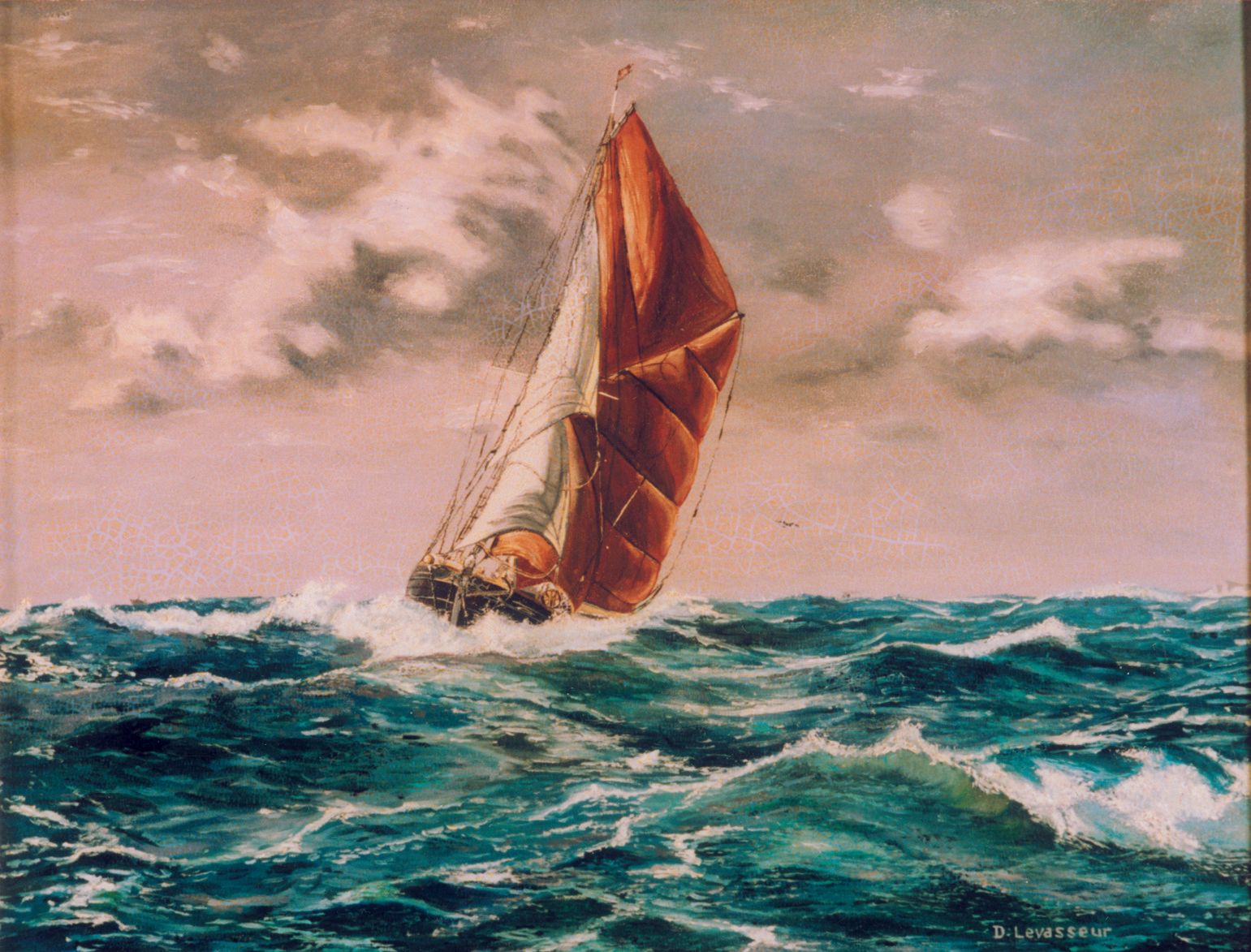N°20 Le Prevalent fonçant par force 6 HST 65 X 54 exposition au salon international du Val d'Or 2001