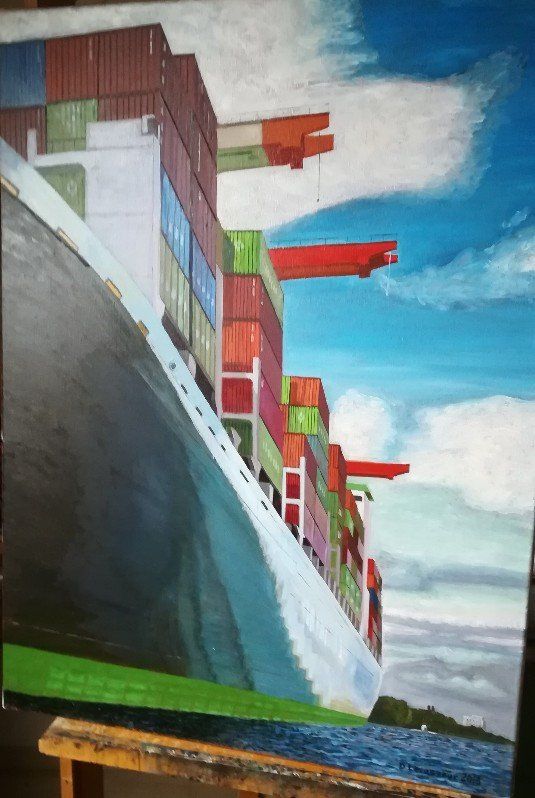 N°148 Super porte containers à Hambourg HST 60 X 81 exposition Cercle des Arts Jarville 2019